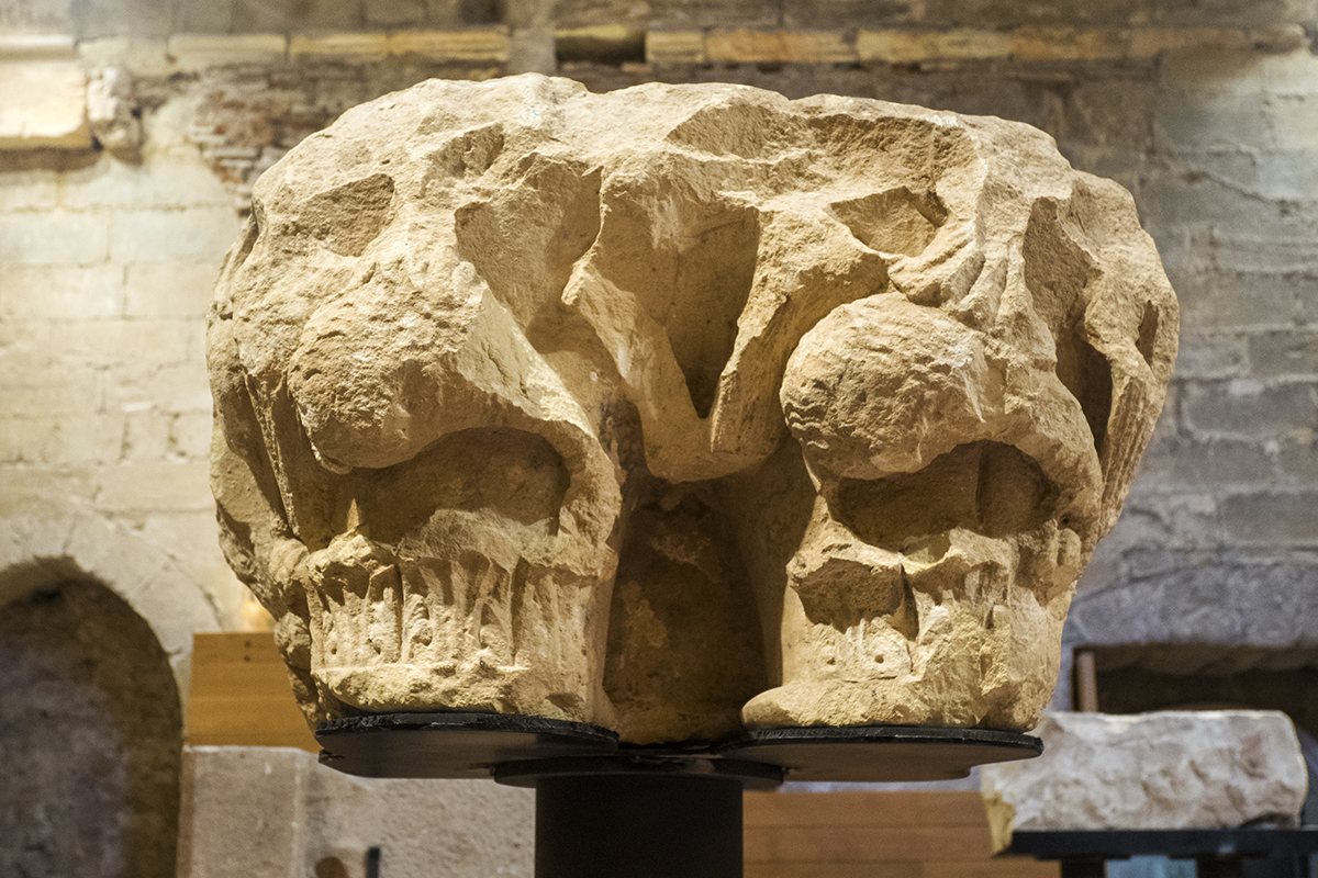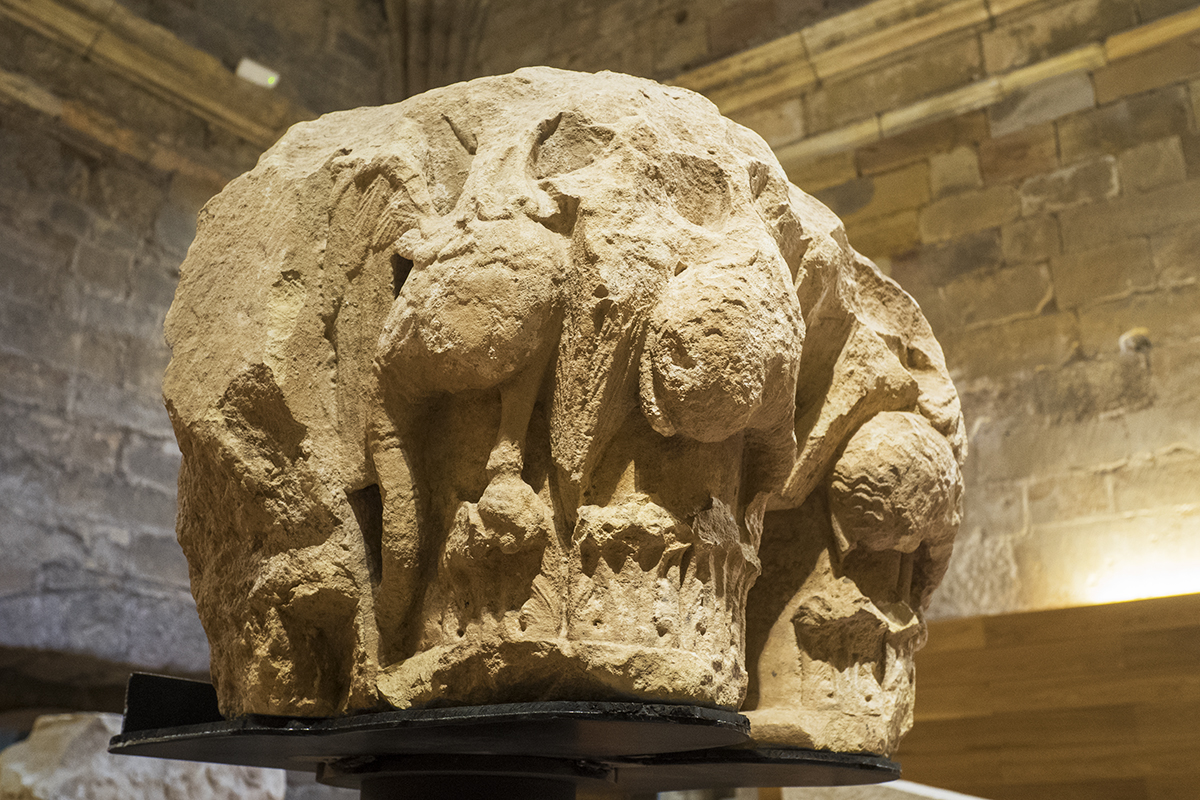 During the different restoration campaigns carried out at the Monastery of Santa María la Real, several architectural fragments have come to light, helping to complete the medieval phases of the complex that have partially disappeared over time. Among them, three capitals of exceptional quality stand out—pieces that take us back to around the year 1200 and point directly to the finest workshops active in the region at that time.