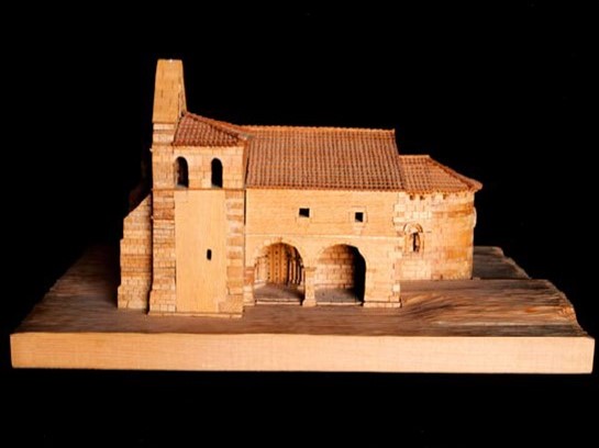 La maqueta que contemplamos representa la iglesia de San Esteban, que se alza sobre un pequeño promontorio en Montoto de Ojeda, ofreciendo una extraordinaria estampa que aúna el patrimonio cultural con el paisaje natural, por lo que recomendamos su visita. Sin embargo, el acceso algo dificultoso al templo motivó que, con el tiempo, la población dejara fuera de servicio litúrgico el edificio, trasladando el culto a una pequeña ermita situada en el casco urbano.
