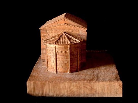 La iglesia a la que representa la maqueta que tenemos frente a nosotros es uno de los edificios románicos más antiguos de la provincia de Palencia. La ermita se alza solitaria entre los campos de labranza, a un kilómetro al sur de la localidad de Perazancas. Pese a sus reducidas dimensiones, albergó en sus orígenes una pequeña comunidad monástica.