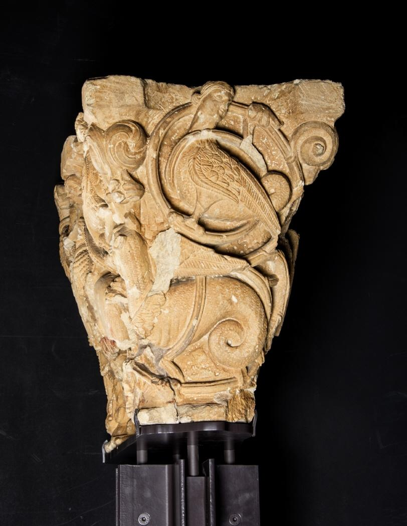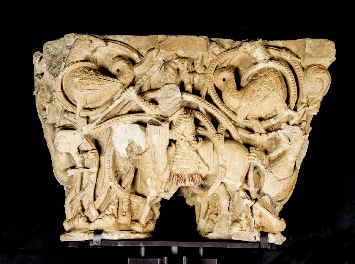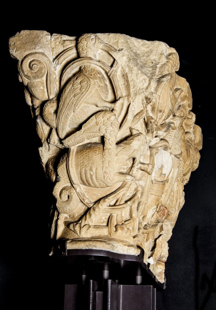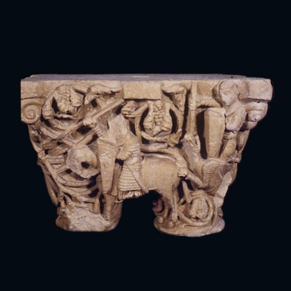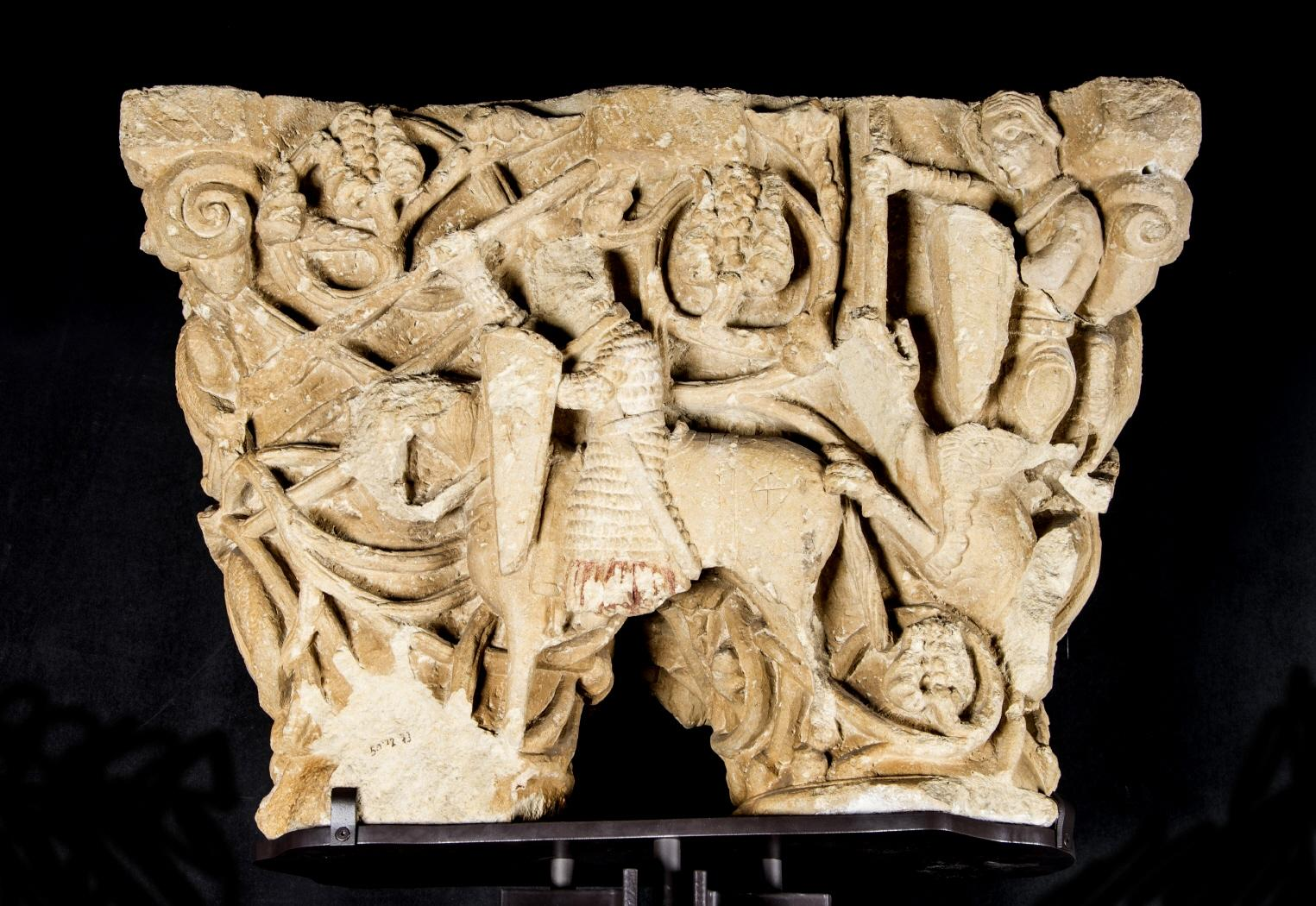 Capitel doble con caballeros entre hojarasca