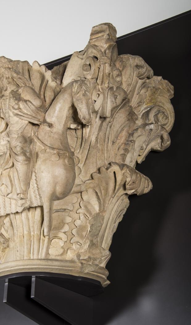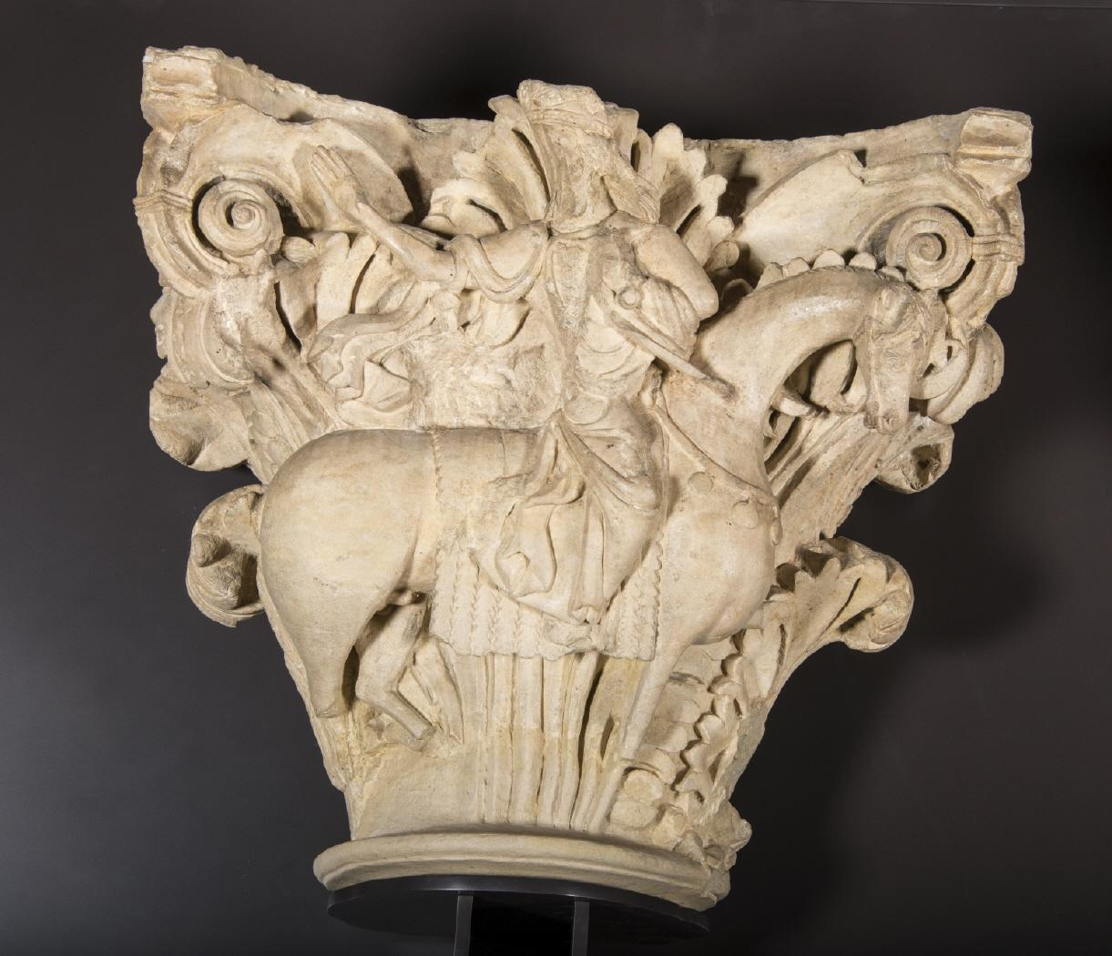 Capitel sencillo con caballero victorioso a caballo
