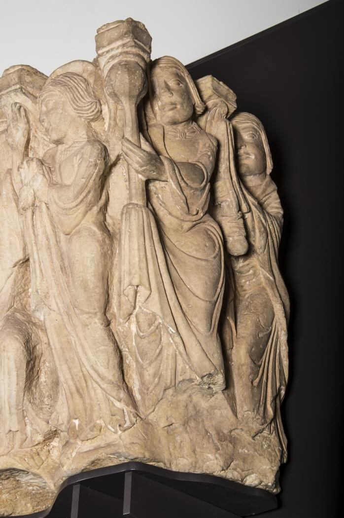 Este capitel, situado originalmente en el arco triunfal de la iglesia, se cuenta entre los mejores del monasterio y se atribuye al Maestro del Cristo de la iglesia de Santiago de Carrión de los Condes. La imagen tallada transmite el mensaje esencial del cristianismo: el triunfo y la resurrección de Cristo, símbolo de esperanza y redención para los fieles.